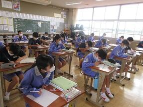 国語の漢字プリントをやっていました。みんな集中して取り組んでいるので、物音一つ聞こえてきませんでした。