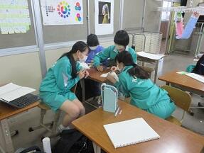 植物の光合成と呼吸について学習していました。本来であれば生徒たちが葉を用意してグループごとに実験をするところですが、担当教員の演示実験になっていました。生徒たちに早く実験や観察をさせてあげたいと強く思いました。