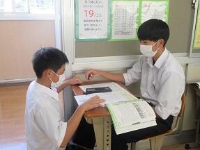 本文を理解する授業が展開されていましたが、少人数で実施しているため細やかに指導がなされていました。