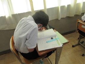 期末テストの返却後に、解答の解説をやっていました。何人かの点数を見ましたが、かなりできていました。