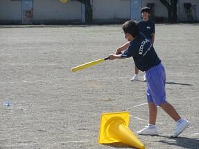 ソフトボールの導入の授業が展開されていました。こちらもなかなかバットに当たらないようでしたが、楽しく取り組んでいました。