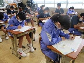 文法で「助詞」のはたらきについての学習が展開されていました。1年生の文法の授業に比べ、さすがに難しくなっていると感じました。