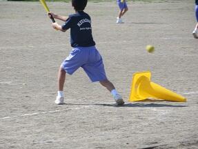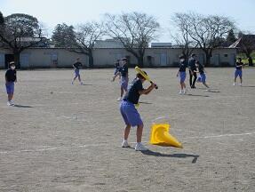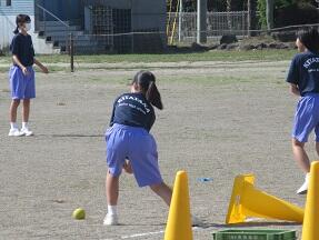 ソフトボールの導入の授業が展開されていました。こちらもなかなかバットに当たらないようでしたが、楽しく取り組んでいました。