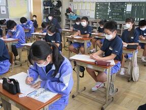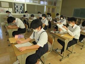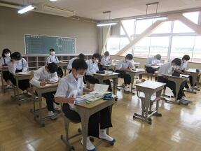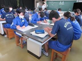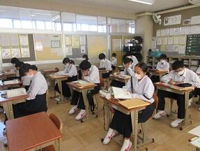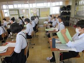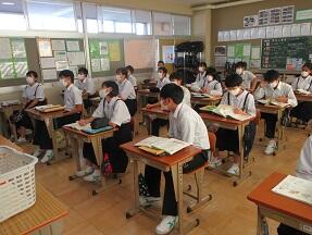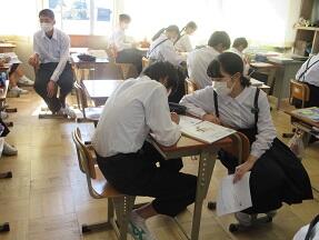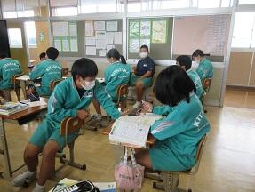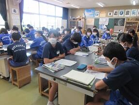 文法で「助詞」のはたらきについての学習が展開されていました。1年生の文法の授業に比べ、さすがに難しくなっていると感じました。