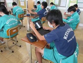近畿地方について、タブレットを使ってパンフレットづくりをやっていました。みんなとても真剣に取り組んでいました。