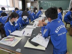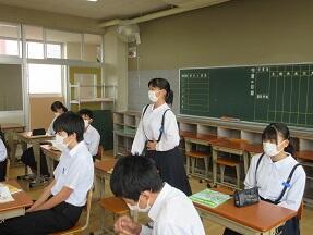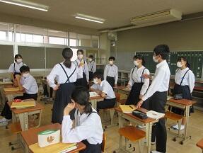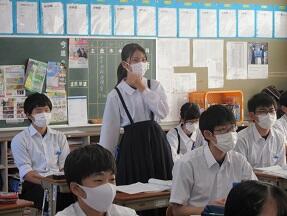 本文の内容理解に入る前の導入をやっていました。しっかり授業の流れを生徒たちに示しての授業で、1時間の流れがよくわかるように工夫していました。