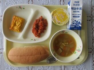 今日の給食は、コッペパン、牛乳、ハムチーズピカタ、スラッピージョー、マカロニカレースープ、レモンゼリーです。高根沢町で生産された物は、玉ねぎです。今日もたいへんおいしく頂きました。