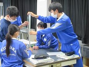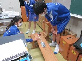 以前2組の授業でお知らせした、等速直線運動を確かめるための実験を実施していました。どのグループも正確な結果が得られたようでした。