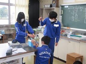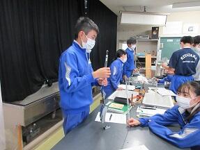 塩化アンモニウムと水酸化ナトリウムを反応させて、アンモニアを発生させてから、その性質を調べる実験を行っていました。とてもよい結果が得られていたようです。