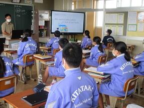 体の発育についての導入の時間でした。生徒たちは校庭や体育館で体を動かしたいところですが、保健もしっかり学ばないといけません。これからどんな学習が展開されるのか楽しみです。