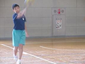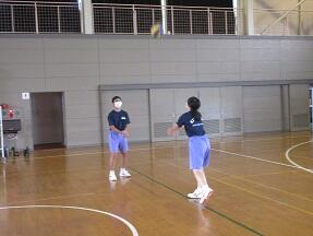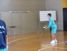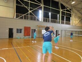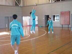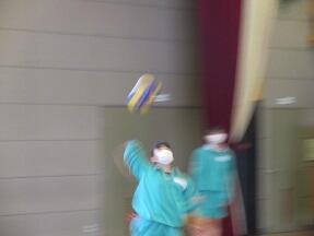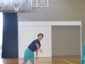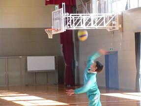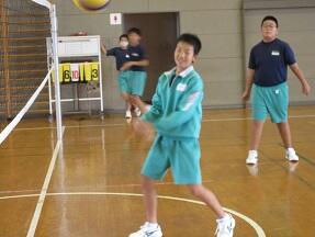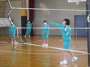 体育館で、バレーボールに取り組んでいました。工夫されたルールでとても楽しそうにゲームを行っていました。