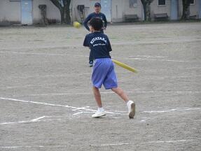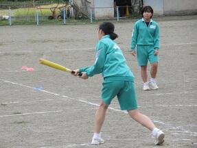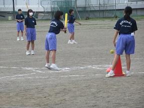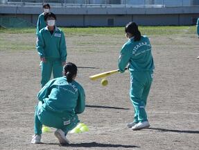校庭でソフトボールに取り組んでいました。こちらもとても楽しそうにゲームを行っていました。