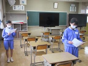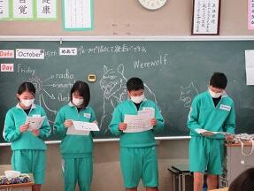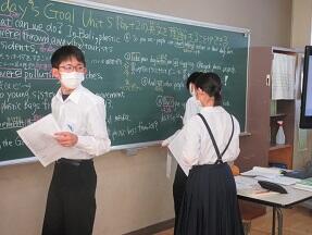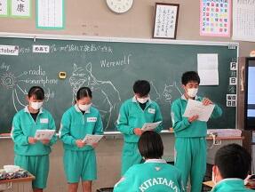 本文の単語が正しく読めるというねらいで、最初に全体で練習した後に、ペアで練習していました。マスクを取って練習できる日が早く来ることを願っています。