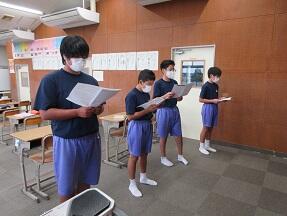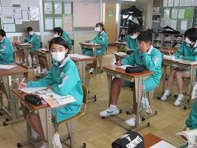 緊急事態宣言が解除され、やっと合唱コンクールに向けての練習が始まりました。今日はパートに別れて練習していました。美しい歌声を響かせることを期待しています。