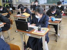 古文を現代文に直して平家と源氏の様子をまとめる授業が展開されていました。なかなか難しい授業ですが、必死に取り組んでいました。