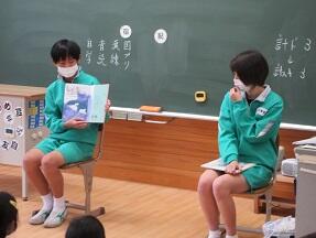 今日の図書委員会は、町の図書館職員の方を招いて東小学校へ行って実施する読み聞かせの練習を行いました。説明を聞いた後に、選書して2人組で練習しましたが、当日がどうなるのかとても楽しみになってきました。