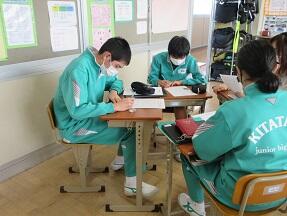 昨日の2組の授業と同じく、体に不必要なものは、どのように処理されるのかということで、腎臓と肝臓の働きについて学習していました。生徒たちは真剣に取り組んでいました。