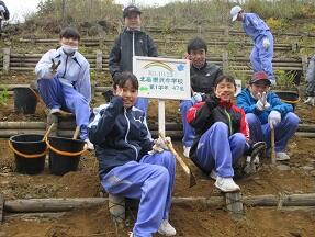 今日1年生が、足尾植樹体験に行ってきました。事前学習もしてあるので、生徒たちは目的意識を持って植樹に取り組めました。雨が心配されましたが、植樹中はほとんど降らず助かりました。