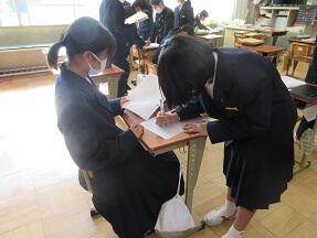 今日の選挙管理委員会の委員長を決めるとき、2年生の女子が自分から手を上げて引き受けました。このクラスの代表として出てきている自覚と責任感、とても素晴らしいと感じました。こんな生徒が増えてくることを期待しています。