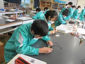 電流の導入で、回路づくりをやっていました。小学校の時もやっているので、みんな理解して取り組んでいました。