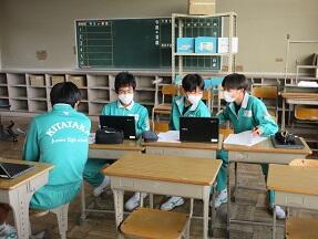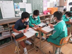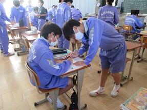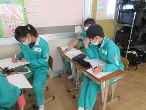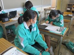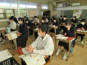 古文を現代文に直して平家と源氏の様子をまとめる授業が展開されていました。なかなか難しい授業ですが、必死に取り組んでいました。