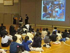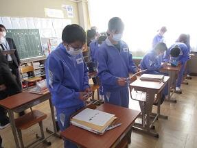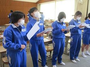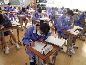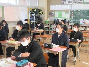 今日、来年度入学予定の町内の小学6年生が本校を訪れ半日体験を実施しました。全体説明の後に、授業を見学して、学校説明や部活動説明を受けました。みんなとても緊張しているようでした。