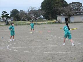 校庭でソフトボールに取り組んでいました。こちらもとても楽しそうにゲームを行っていました。