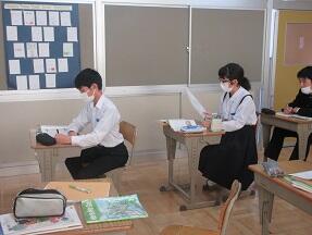古文を現代文に直して平家と源氏の様子をまとめる授業が展開されていました。なかなか難しい授業ですが、必死に取り組んでいました。