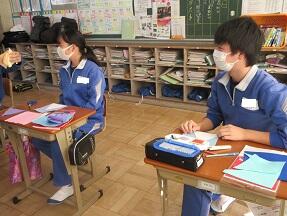 比例、反比例のプリント学習に取り組んでいました。丸付けをしている教科担任が「昨日より、伸びてるね。」という声かけが心地よく聞こえてきました。
