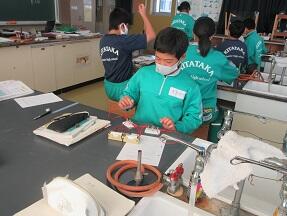 身近な物から発生する気体の種類を調べる実験を、入浴剤や風呂釜洗浄剤などをつかって行っていました。実験の手際がよくなっていると感じました。