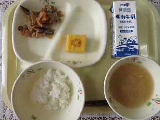 今日の給食は、地産地消の日で、セルフ五目ご飯(ご飯・五目ご飯の具)、牛乳、焼き印入り県内産卵焼き、大根と油揚げの味噌汁です。高根沢町で生産された物は、味噌、にんじん、干ししいたけ、大根、ねぎ、米です。今日もたいへんおいしく頂きました。