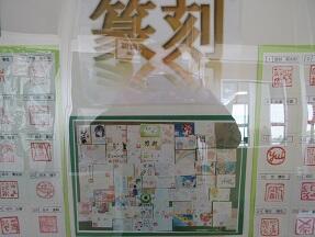 美術室前の廊下に、3年生が美術の授業で作成した篆刻の作品が飾られていました。みんな頑張って掘ったと思います。