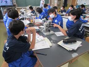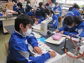 顕微鏡の使い方とプレパラートの作り方について学習していました。