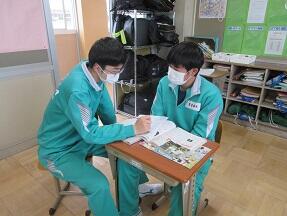 資料、朝市の「おはようございます」を使い、内容項目「礼儀、適切な言動」について考えていました。