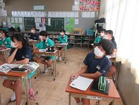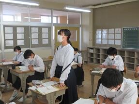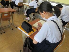 昨日の午後雨が降り出したので、職員室にいる教職員が慌てて国旗を降ろしました。本校は国旗の揚げ降ろしをするのは生徒会役員ですが、放課後その生徒会役員が職員室に「国旗、ありがとうございました。」とお礼を言いに来ました。当たり前のことかもしれませんが、なかなかできないことです。すごくうれしくなりました。