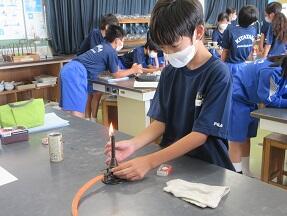 以前お知らせした、1年生のガスバーナーのテストを今日の3校時に実施していたので見てきました。みんな悪戦苦闘して、挑戦していました。まだ全員合格とはなりませんでした。