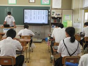 今日の5校時に1年2組が、6校時に1年1組が講師にエコ・ハウスたかねざわの増田 茂さんを招いて、現在起きている環境問題や地域での取組についての話を聞きました。