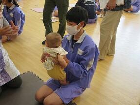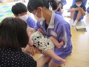 今日の4校時に、2年生が赤ちゃんふれあい活動を実施しました。今年度は感染対策を万全にして、だっこをする活動までできました。最初はびくびくだっこしていましたが、少しずつ慣れて生徒たちの表情が穏やかになっていくのがよくわかりました。素晴らしい体験ができました。