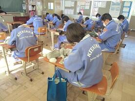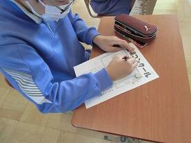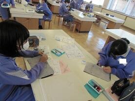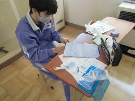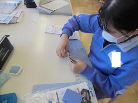 ブックカバーづくりで、しつけ縫いに取り組んでいました。