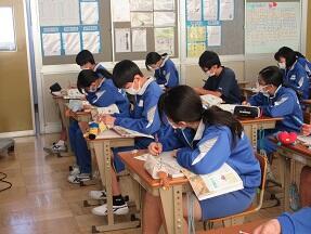 今日は、全学年実力テストを実施しています。3年生は、県立高校入試まで今回を含めあと2回の実力テストですが、他の学年と違って緊張感があるように感じました。