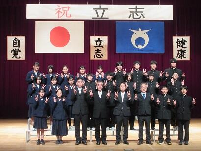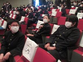 本日、2年生が阿久津中学校と合同で、立志式とそれにともなう松谷正光ドリーム事業「夢見る事業」を実施しました。どちらも生徒が中心に進行し、とてもよい立志式と講演会になりました。