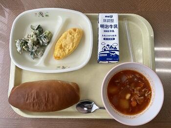 いちごパン オムレツ 野菜ツナマヨ和え ポークビーンズ