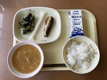 ごはん いわし梅煮 のり和え ジャガイモと油揚げの味噌汁