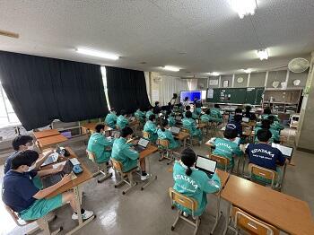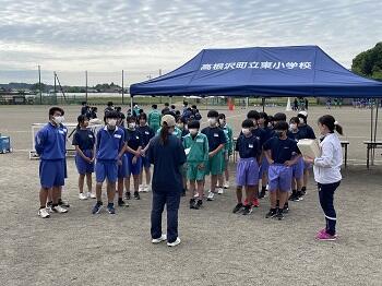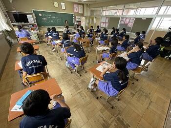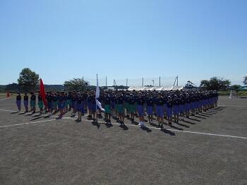 土曜日の決戦を控え、本日、生徒たちはひと時の休息をとっております。代わりに校庭では東小学校のかわいい児童が運動会の練習をしていました。写真は1校時目の授業風景です。
