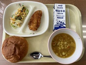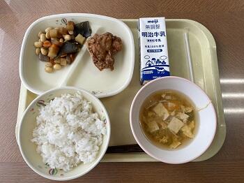 麦ごはん 鶏肉のから揚げ 五目煮豆 干ぴょう入りかき玉汁