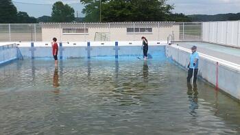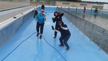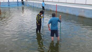 生徒下校後には教職員作業を実施し、プールの基礎洗浄や校庭周辺の堀さらい等を行いました。プール清掃の仕上げは、後日、生徒たちに託します。よろしくお願いします。