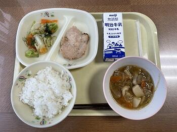 ごはん 鶏肉味噌焼き じゃこのサラダ 根菜のごま汁
