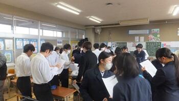 本日の午後、3年生は保護者とともに、県立高等学校の受検手続き等について説明を受けました。私立高等学校受験手続もほぼ終了し、いよいよ本命という生徒も多いと思います。まずは保護者とともに自分の進路をしっかり丁寧に考え、受検に向けての準備を更に本格化させてほしいです。