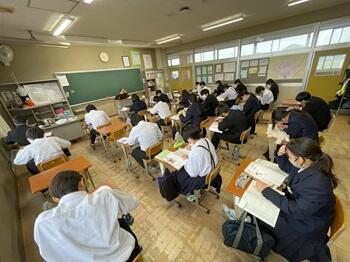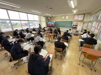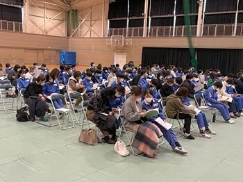 本日の午後、3年生は保護者とともに、県立高等学校の受検手続き等について説明を受けました。私立高等学校受験手続もほぼ終了し、いよいよ本命という生徒も多いと思います。まずは保護者とともに自分の進路をしっかり丁寧に考え、受検に向けての準備を更に本格化させてほしいです。