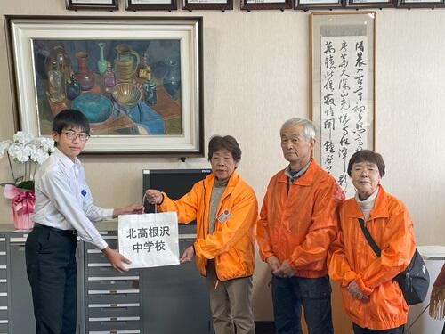 本日昼休み、「チューリップ交流会」が行われました。これは「社会を明るくする運動」の一環で、生徒会長がチューリップの球根の贈呈を受けました。次回の委員会活動において美化委員会が中心となり、プランターへの植え付けを行う予定です。花咲く春の到来が待ち遠しいです。